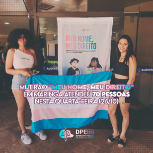 17:32 Mutirão “Meu Nome, Meu Direito” em Maringá atendeu 70 pessoas nesta quarta-feira (26/10) “Enquanto integrante da comunidade das travestis, eu acho essa ação extremamente importante, porque esse pedaço de papel, com que todo mundo se importa, infelizmente, valida a gente enquanto cidadã”.