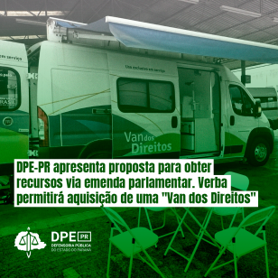 16:34 DPE-PR apresenta proposta para obter recursos via emenda parlamentar. Verba permitirá aquisição de uma "Van dos Direitos" Integrantes da Defensoria Pública do Estado do Paraná (DPE-PR) participaram na manhã desta segunda-feira (24/10) de uma reunião com a bancada federal paranaense no Palácio Iguaçu.