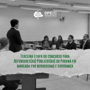 15:56 Terceira etapa do concurso para Defensores(as) Públicos(as) do Paraná foi marcada por nervosismo e esperança Aconteceu entre os dias 13 e 15 de outubro a 3.ª fase do IV Concurso para Defensores(as) Públicos(as) do Paraná, com a realização da Prova Oral.