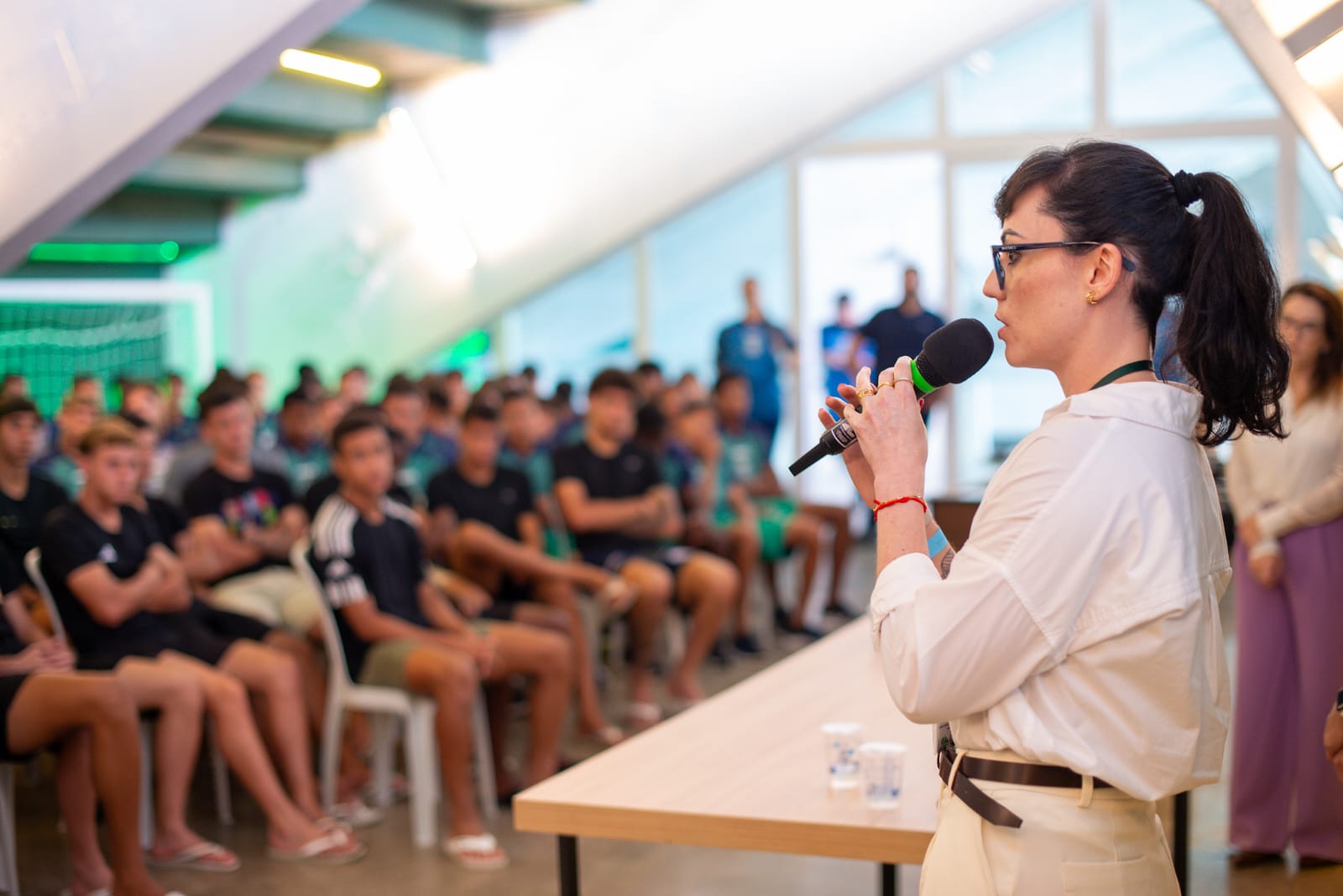 Já no Estádio Major Couto Pereira, as representantes da DPE-PR falaram com cerca de 150 jovens, de idades variadas. O atleta Ottavio Janoni Tolentino, de 16 anos, disse que o sonho de ser profissional no futebol exige responsabilidade e consciência social, já que é um espaço de grande visibilidade. “Muita gente assiste e gosta de futebol, e os jogadores sempre transmitem uma mensagem para as pessoas que acompanham. Precisamos aprender para podermos transmitir uma boa mensagem e ajudar nesse tema”, disse o jovem.