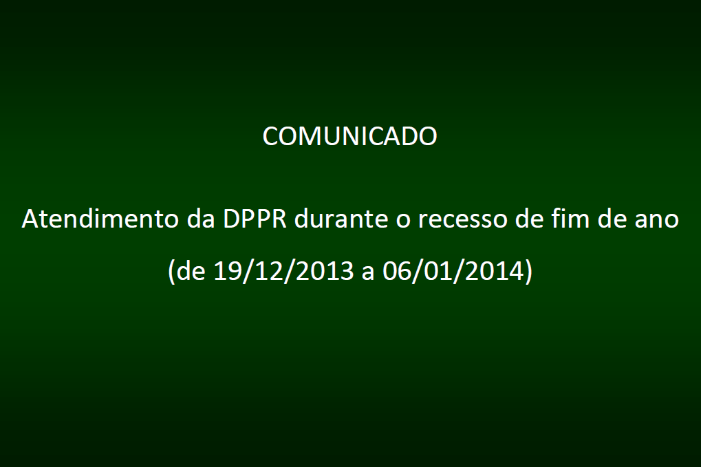 De acordo com a Resolução Nº 110/2013, que regulamenta o expediente da Defensoria Pública do Estado do Paraná durante o período de 20 de dezembro de 2013 e 06 de janeiro de 2014, comunica-se: