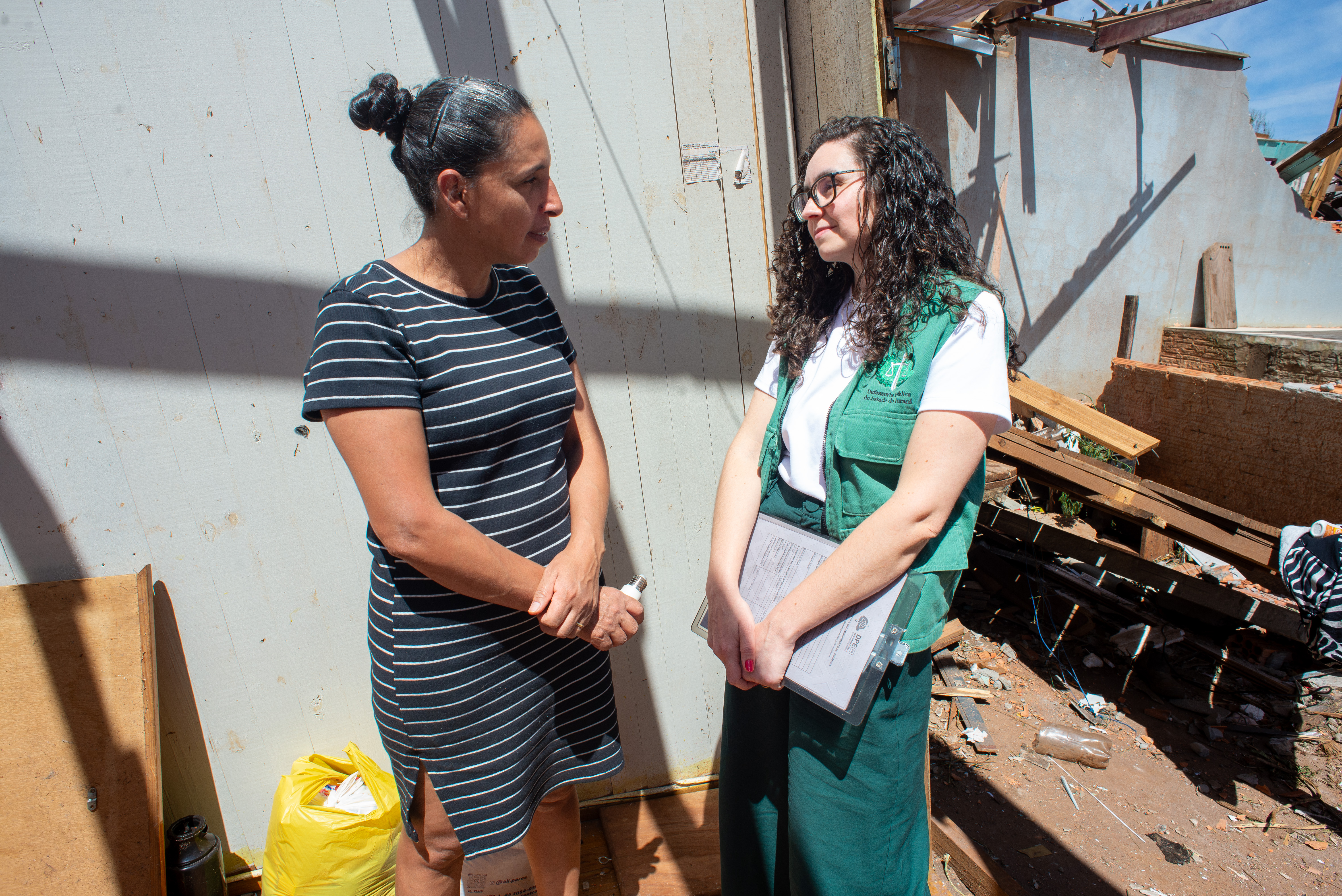 As primeiras certidões de nascimento perdidas durante o tornado, por exemplo, já foram entregues no abrigo da Casa de Líderes, em Laranjeiras do Sul. No entanto, as buscas ativas também são oportunidades de escuta da população. Esse trabalho é fundamental, como explica a psicóloga da DPE-PR Lethicia Gaidarji. “Só o fato de escutarmos as pessoas já faz diferença. As pessoas têm buscado necessidades emergenciais, sem muitos momentos para conversar com calma sobre o que aconteceu. Por isso, quando paramos para escutar, elas nos trazem gratidão”, destaca Gaidarji.