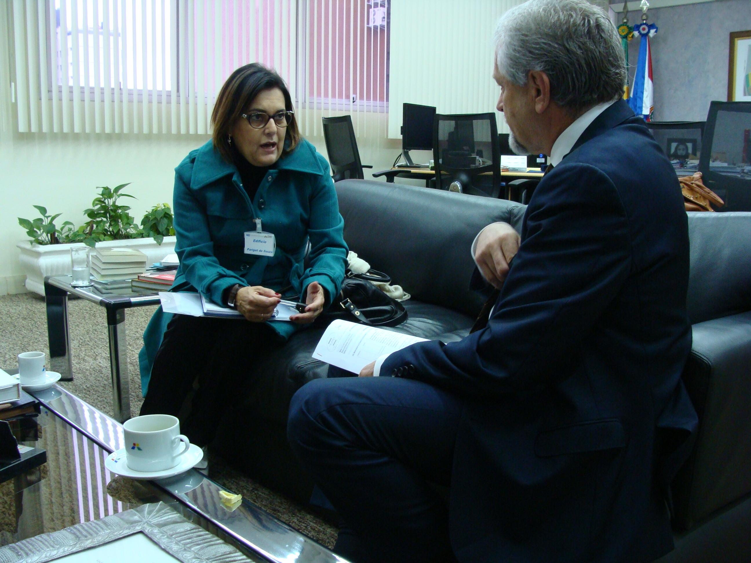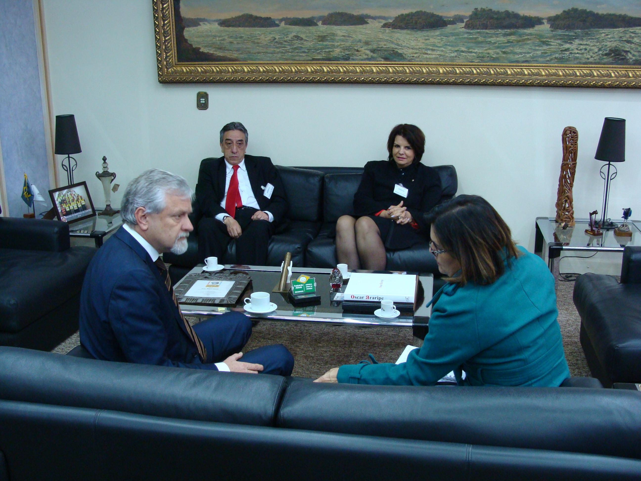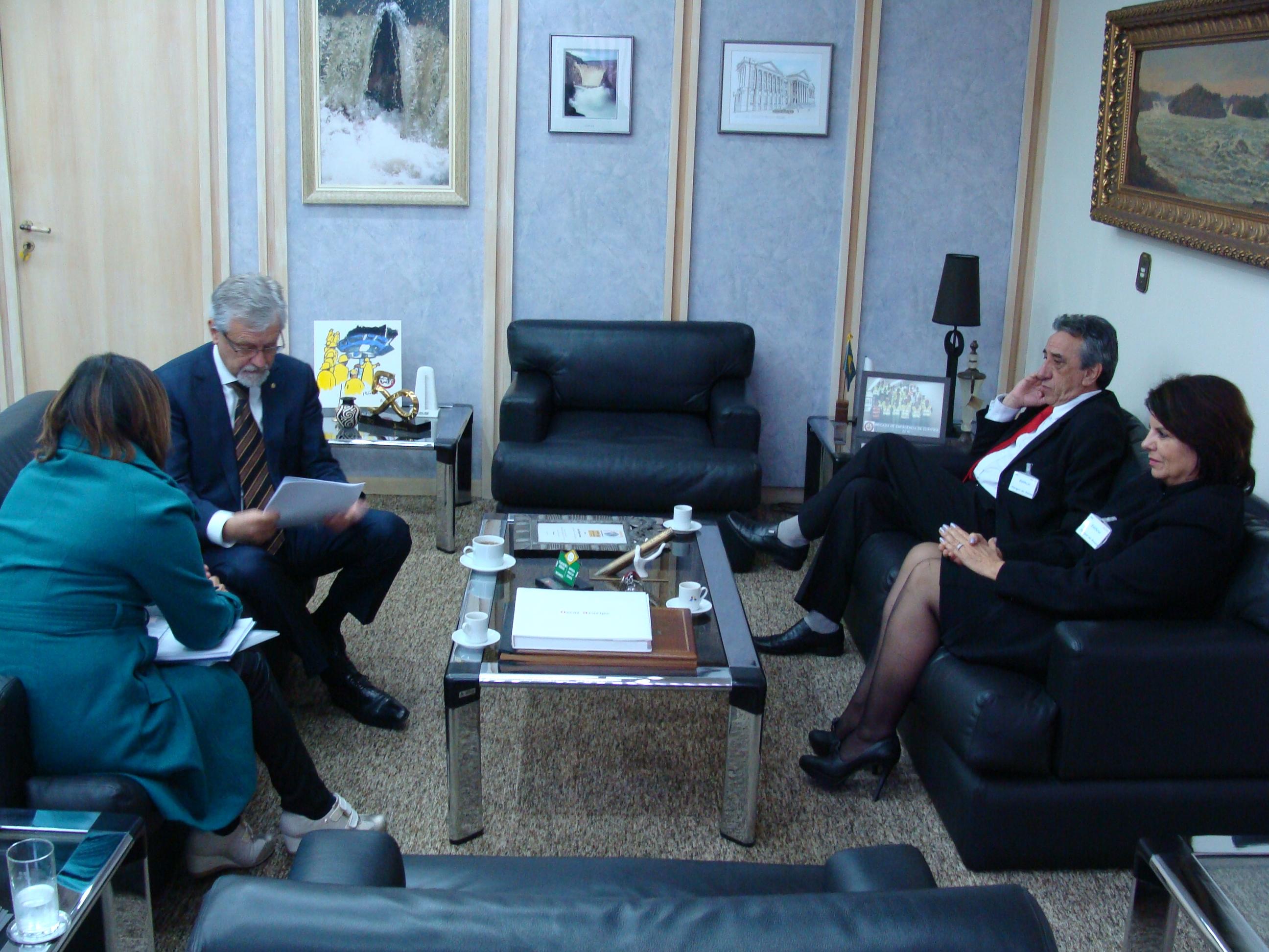 O defensor público-geral do Estado em exercício, Osni Batista Padilha e a defensora pública Josiane Lupion se reuniram na manhã desta terça-feira (24/09), em Curitiba, com a presidente da Associação Brasileira de Magistrados, Promotores de Justiça e Defensores Públicos da Infância e da Juventude (ABMP), Hélia Maria Barbosa, e o diretor-geral brasileiro da Itaipu Binacional, Jorge Samek. O objetivo da reunião foi apresentar ao diretor da usina o projeto para a realização do 25° Congresso Nacional da ABMP, que será realizado em Foz do Iguaçu (PR) entre 25 e 28 de março de 2014. O evento tem o apoio da Defensoria Pública do Estado do Paraná, que será uma das instituições anfitriãs.