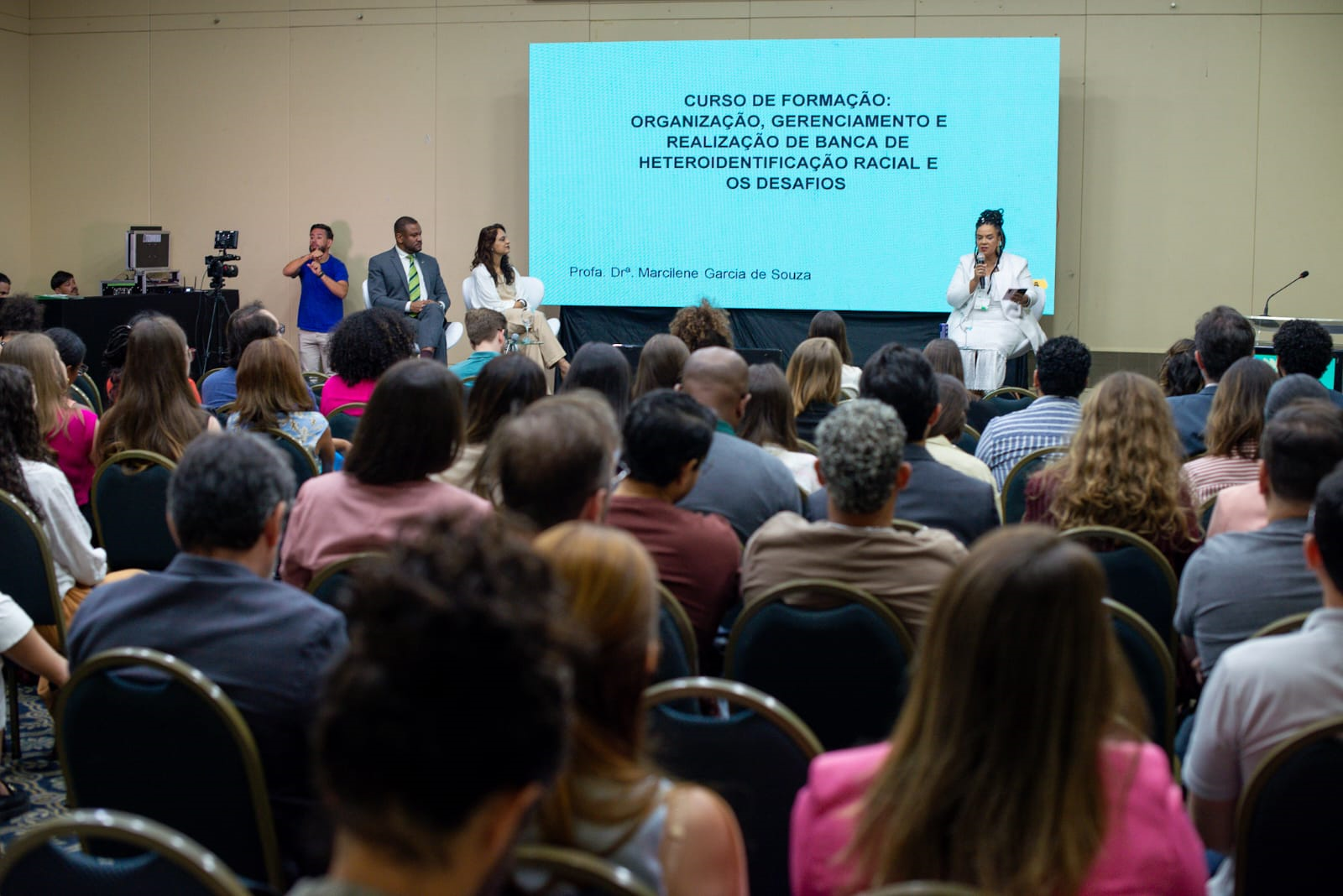 A abertura dos trabalhos trouxe ao centro do palco a discussão sobre equidade com a palestra "Ações Afirmativas por meio de cotas raciais e heteroidentificação racial: desafios e perspectivas", conduzida por Marcilene Garcia de Souza, representante do Ministério da Igualdade Racial. A palestrante destacou a importância das bancas de heteroidentificação não apenas como um mecanismo de controle burocrático, mas como ferramenta essencial para garantir que a política pública atinja efetivamente seu público-alvo e produza indicadores reais sobre a desigualdade.