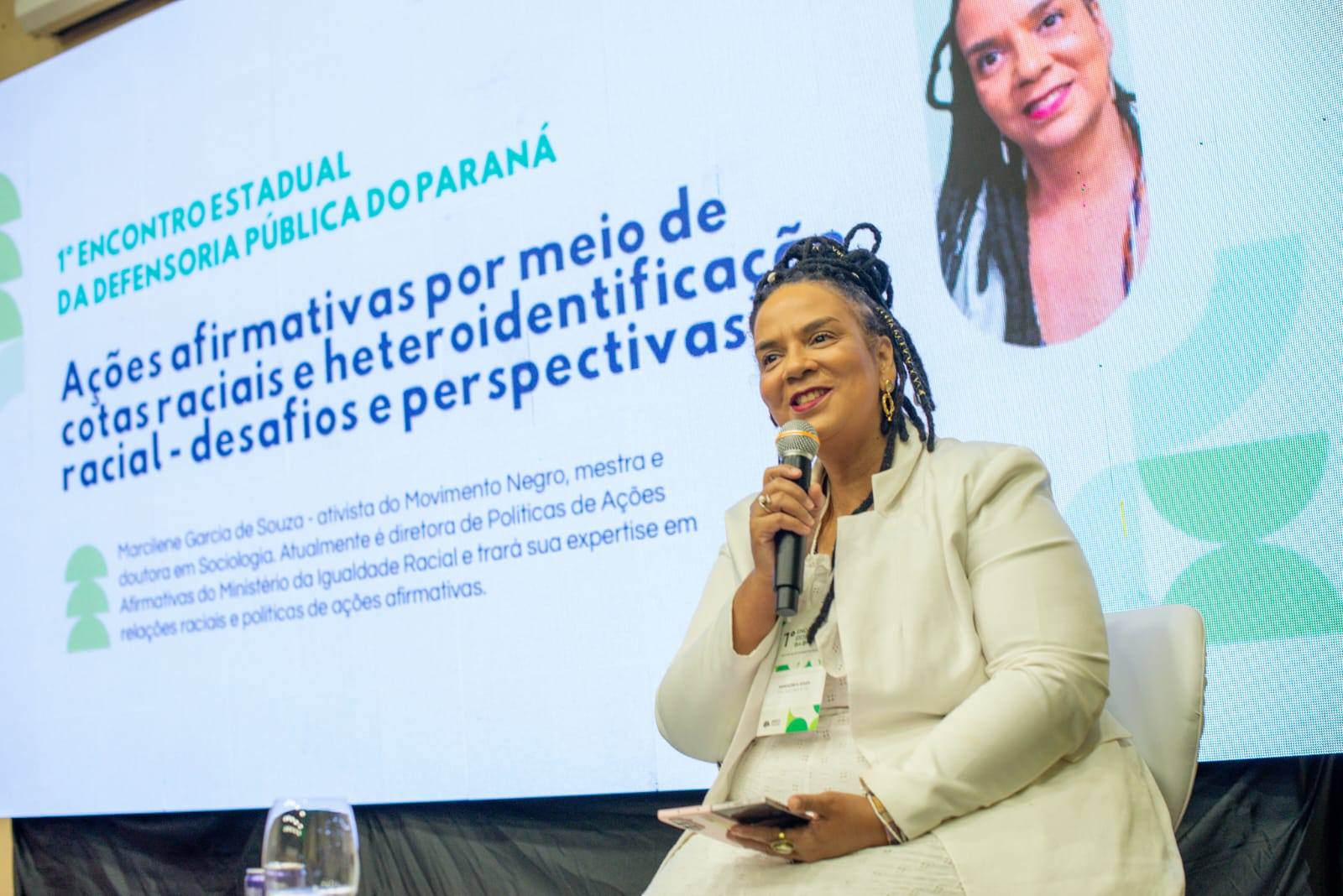 Para Marcilene, debater o tema no ambiente da Defensoria é estratégico devido ao perfil do público atendido pela instituição. "A missão das Defensorias é em favor dos que mais precisam e, quando analisamos os indicadores sociais, sabemos que essa população é majoritariamente negra. O quesito cor, a identificação se os cidadãos são pretos, pardos ou brancos, é extremamente importante na produção de indicadores, mas mais do que isso: para ressignificar ações quando identificamos que a desigualdade tem um alvo, que nesse caso é a população negra", afirmou a palestrante.