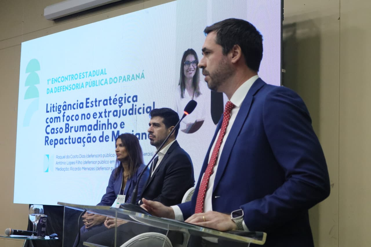 Para debater o tema, o Encontro recebeu a defensora pública-geral de Minas Gerais, Raquel da Costa Dias, e o defensor público mineiro Antônio Lopes Filho. Sob a mediação do defensor Ricardo Menezes, a mesa detalhou como a DPE-MG atuou na defesa das vítimas dos rompimentos das barragens, priorizando acordos que garantissem reparações mais céleres.