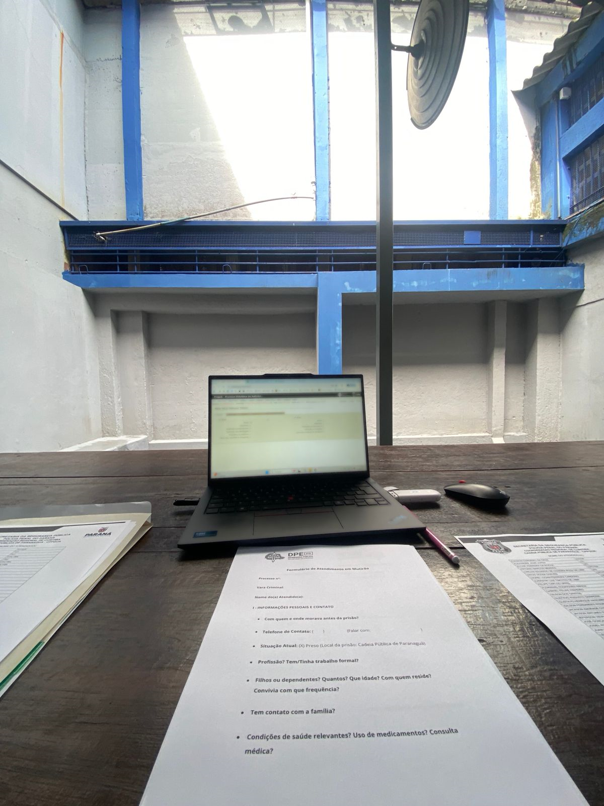 A Defensoria Pública do Estado do Paraná (DPE-PR) realizou, nesta segunda-feira (29), um mutirão de atendimentos na Cadeia Pública de Paranaguá, com orientação jurídica gratuita para pessoas privadas de liberdade que não possuem um advogado constituído. A ação foi realizada das 9h às 13h, em parceria com o Conselho da Comunidade - órgão de execução penal que analisa a situação administrativa da vida da pessoa no sistema prisional, como seu estado de saúde, trabalho e contato familiar - e resultou em um total de 35 atendimentos.