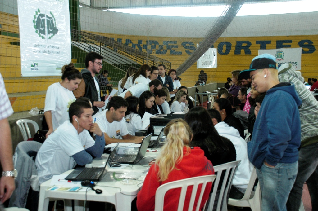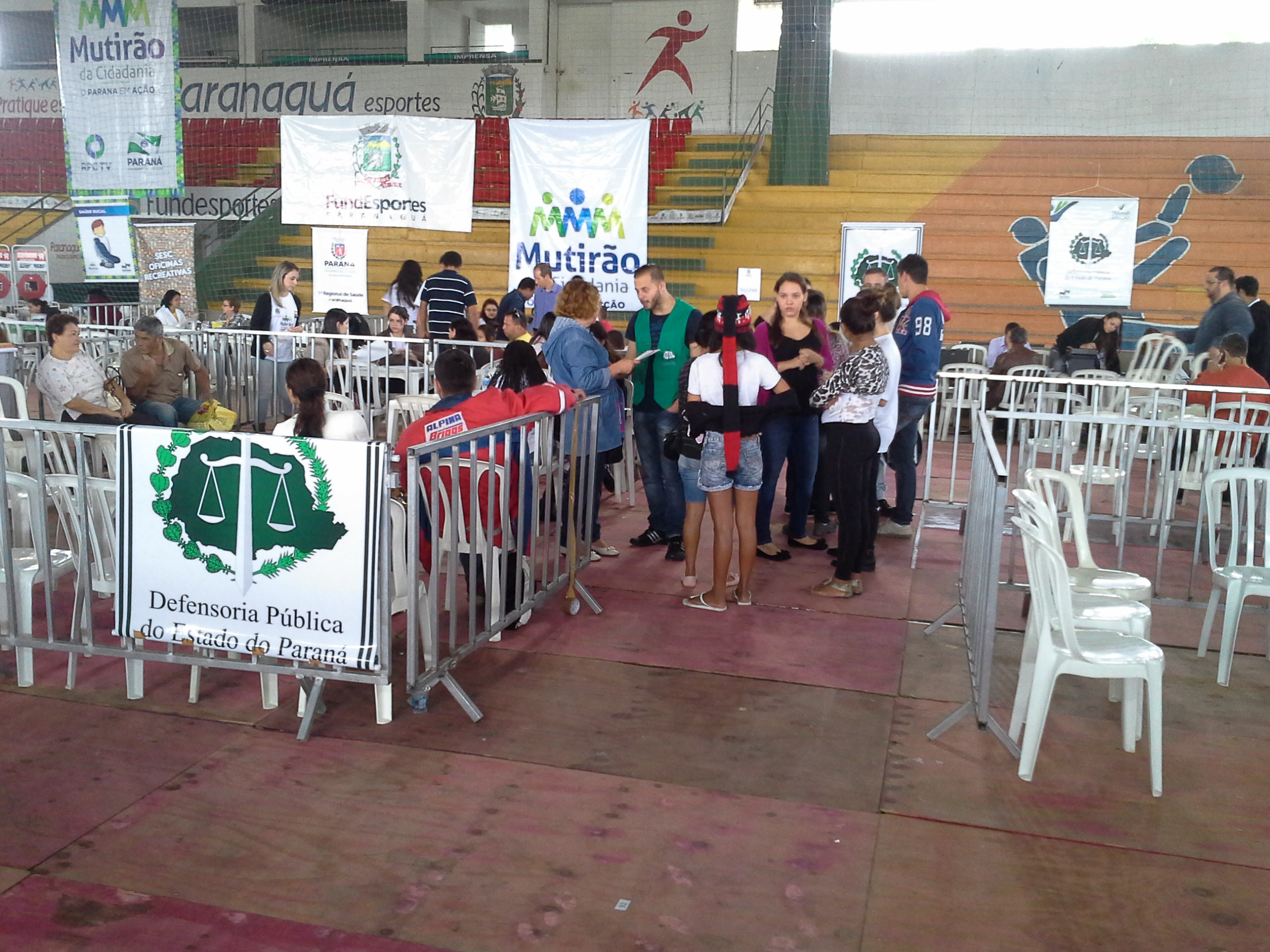 Apesar da chuva, o “Mutirão da Cidadania – O Paraná em Ação” de Paranaguá, realizado neste fim de semana (07 e 08/06) no ginásio municipal, registrou grande público nos dois dias de evento. Pela primeira vez o mutirão teve o atendimento da DPPR em Paranaguá, com a participação de três defensores, professores e alunos do Instituto Superior do Litoral que realizaram orientações e ajuizamento em Direito de Família e Infância e Juventude, além de orientações também em Direito Penal e Cível.