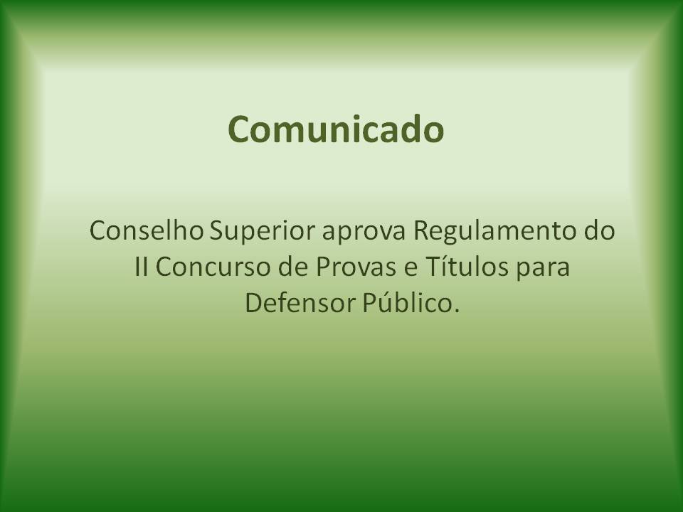 O Conselho Superior aprovou, na última sexta-feira (17/01), o Regulamento do II Concurso de Provas e Títulos para ingresso na Carreira de Defensor Público do Estado do Paraná. O edital será aberto nas próximas semanas, contemplando as vagas não preenchidas pelo primeiro concurso. Mais informações em breve.