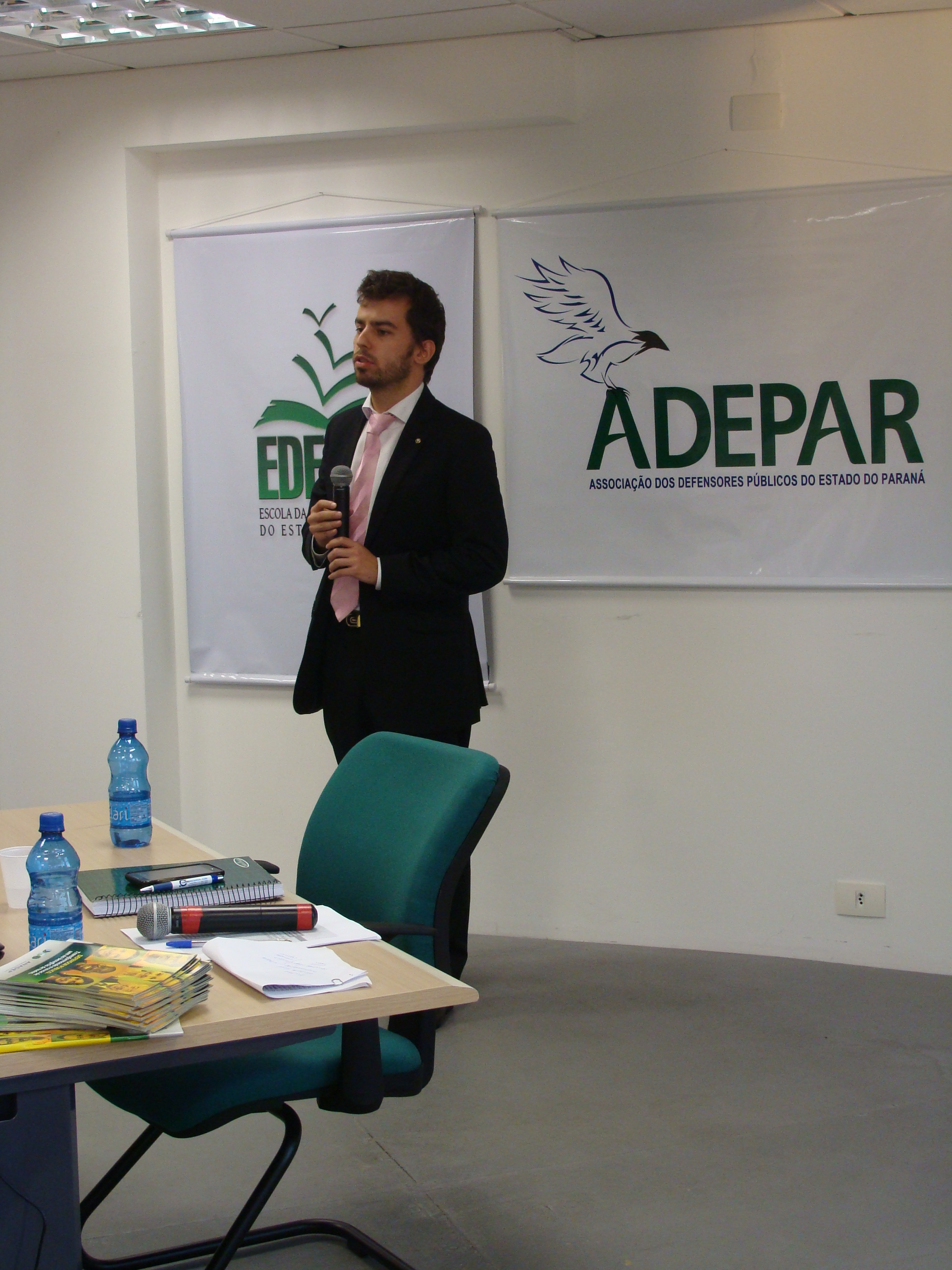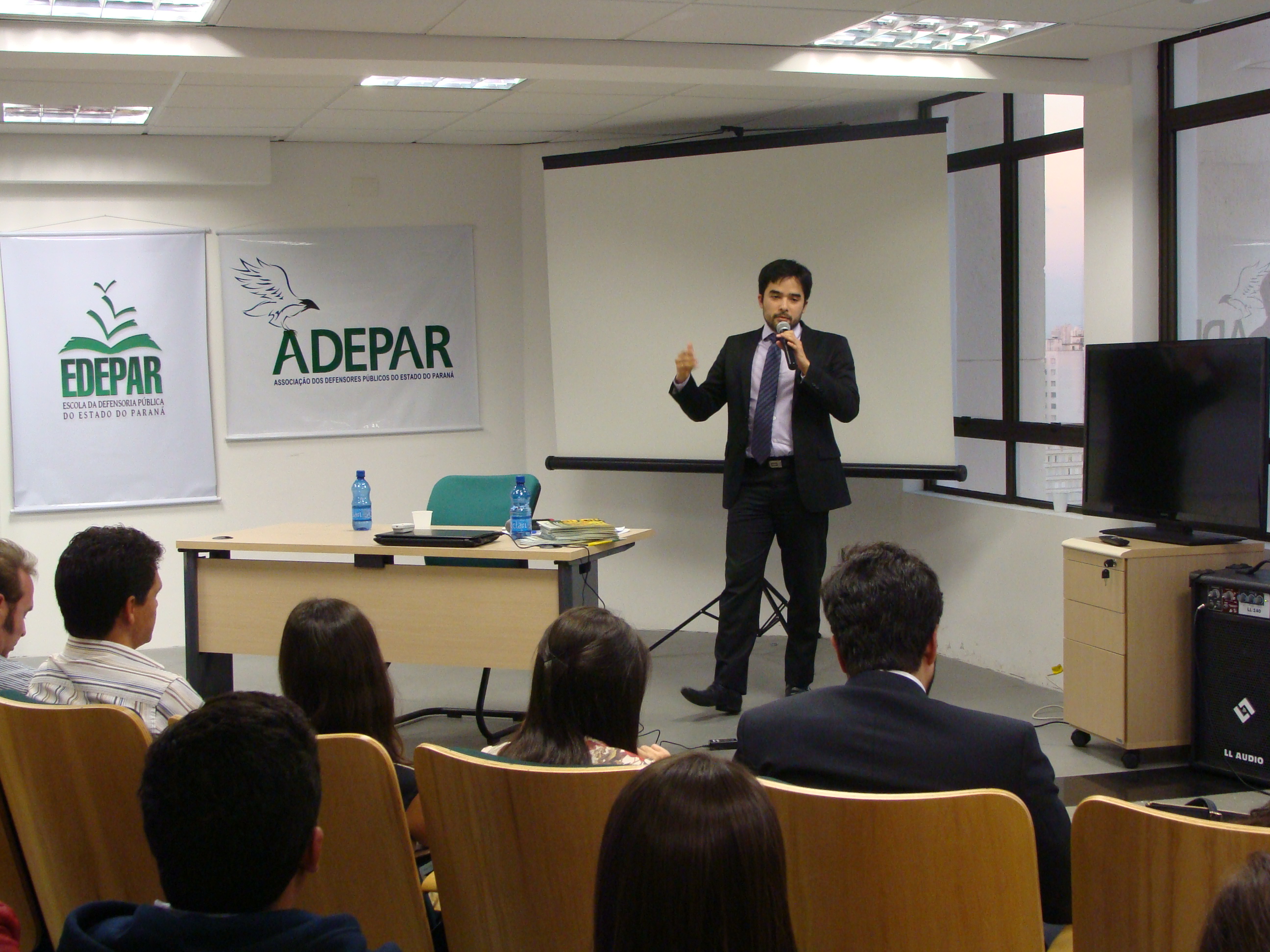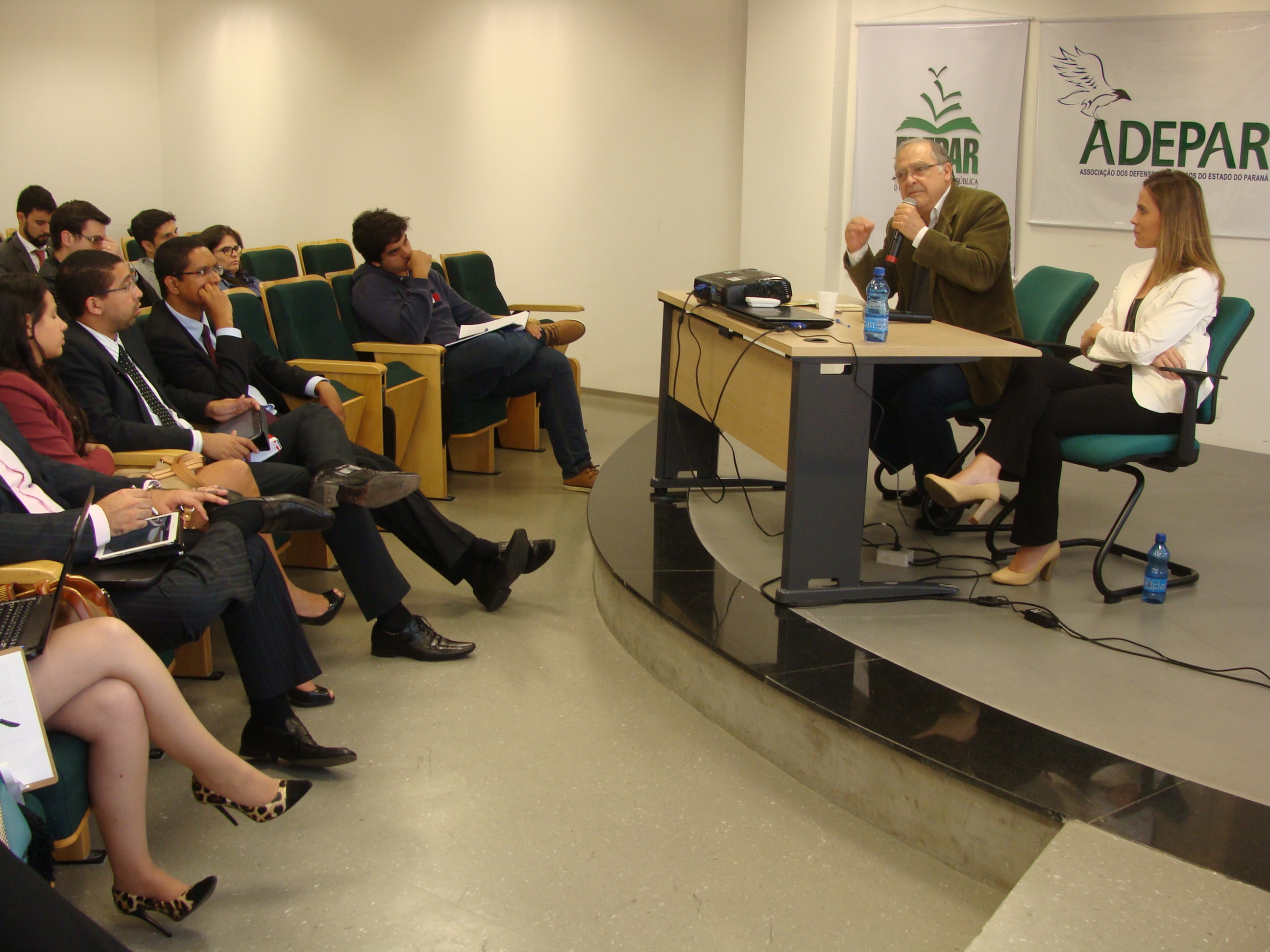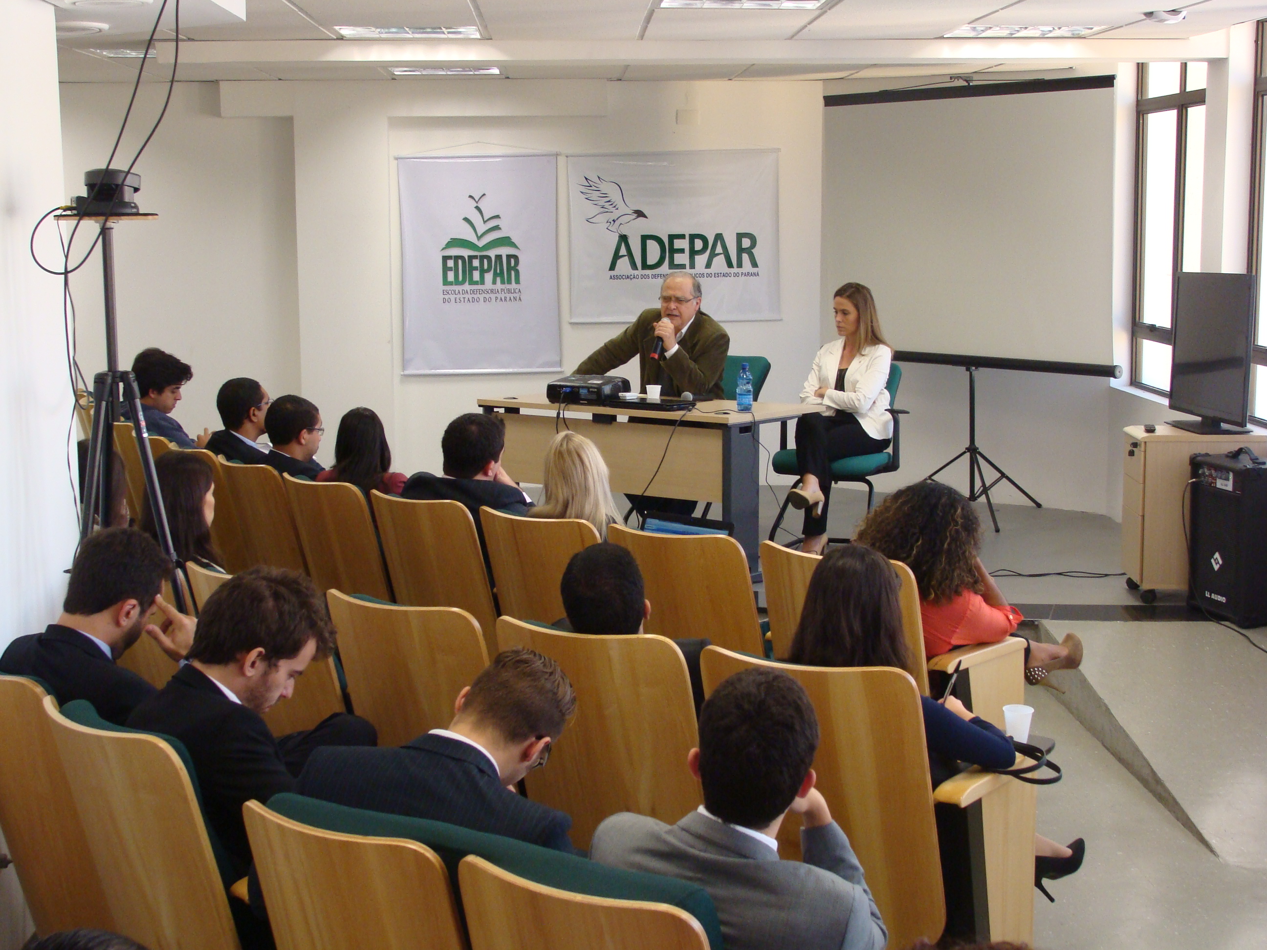 Ciclo de Palestras - O dia começou com uma série de palestras para os defensores públicos. O I Encontro em comemoração ao Dia do Defensor Público foi uma realização da Associação dos Defensores Públicos do Estado do Paraná (ADEFPAR) e da Escola da Defensoria Pública. A primeira palestra começou às 9h com tema "A defesa penal e a proteção contra autoincriminação" e foi conduzida pelo advogado Juarez Cirino dos Santos. Em seguida, o defensor público de São Paulo Wagner Giron de La Torre falou sobre a atuação em ações coletivas pela efetivação dos direitos fundamentais de comunidades vítimas de desastres decorrentes de alterações climáticas. À tarde, o tema foi "A questão agrária no estado do Paraná e a atuação da Defensoria Pública" e contou com a presença de Carlos Frederico Mares de Souza Filho, procurador do Estado do Paraná e membro do Conselho Diretor do Instituto Latinoamericano de Servicios Legales Alternativos (ILSA), de Bogotá.