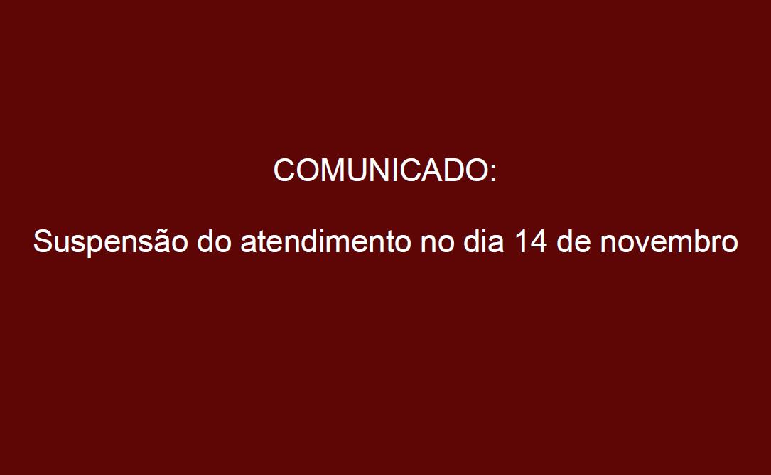 Não haverá atendimento no dia 14 de novembro 08/11/2013 - 11:20