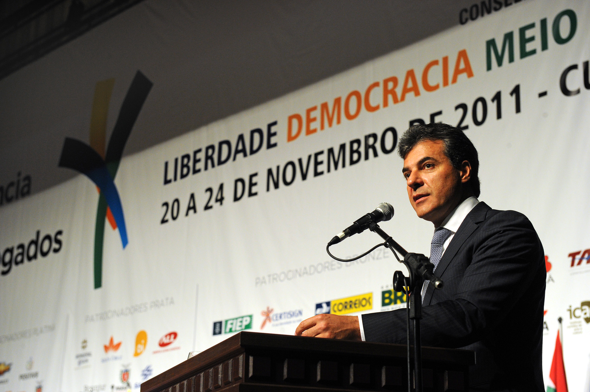 O governador Beto Richa participou nesta segunda-feira (21), em Curitiba, da sessão solene de abertura da 21ª Conferência Nacional dos Advogados, que tem como tema “Defesa das Liberdades, da Democracia e do Meio Ambiente”. Promovido pelo Conselho Federal da Ordem dos Advogados do Brasil (OAB), o evento reúne até quinta-feira (24), na Universidade Positivo, mais de 7 mil advogados de todo o País. Richa apresentou aos participantes iniciativas adotadas pelo governo do Estado para assegurar acesso à Justiça e melhorar a segurança pública – como a criação da Defensoria Pública do Estado e a contratação de policiais militares e civis.