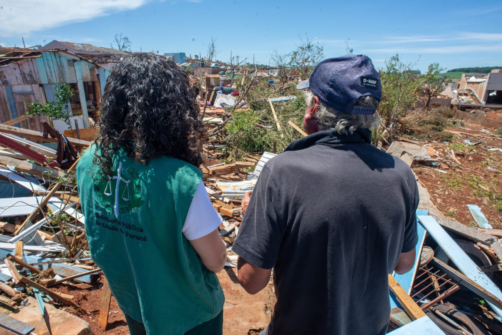 No terceiro dia de atendimento em Rio Bonito do Iguaçu, a força-tarefa da Defensoria Pública do Estado do Paraná (DPE-PR) visitou familiares de duas das sete pessoas que morreram durante o tornado ocorrido na última sexta-feira (7). A instituição realizou busca ativa na região que concentra moradias fornecidas pela Companhia de Habitação do Paraná (Cohapar), a mais afetada do município.