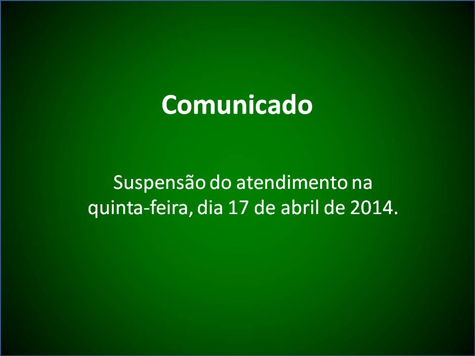A Defensoria Pública do Estado do Paraná, através da Resolução nº 070, de 04 de abril de 2014, considerando o Decreto Judiciário nº 551/2014, do Tribunal de Justiça do Estado do Paraná, informa que fica suspenso o expediente no dia 17 de abril de 2014. Os atendimentos marcados para a referida data serão reagendados.